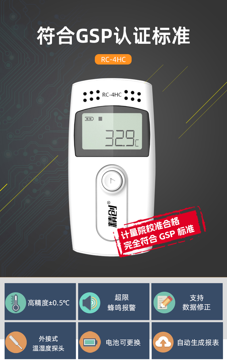 精創rc-4溫濕度記錄儀 冷藏冷鏈溫濕度記錄儀 GSP認證