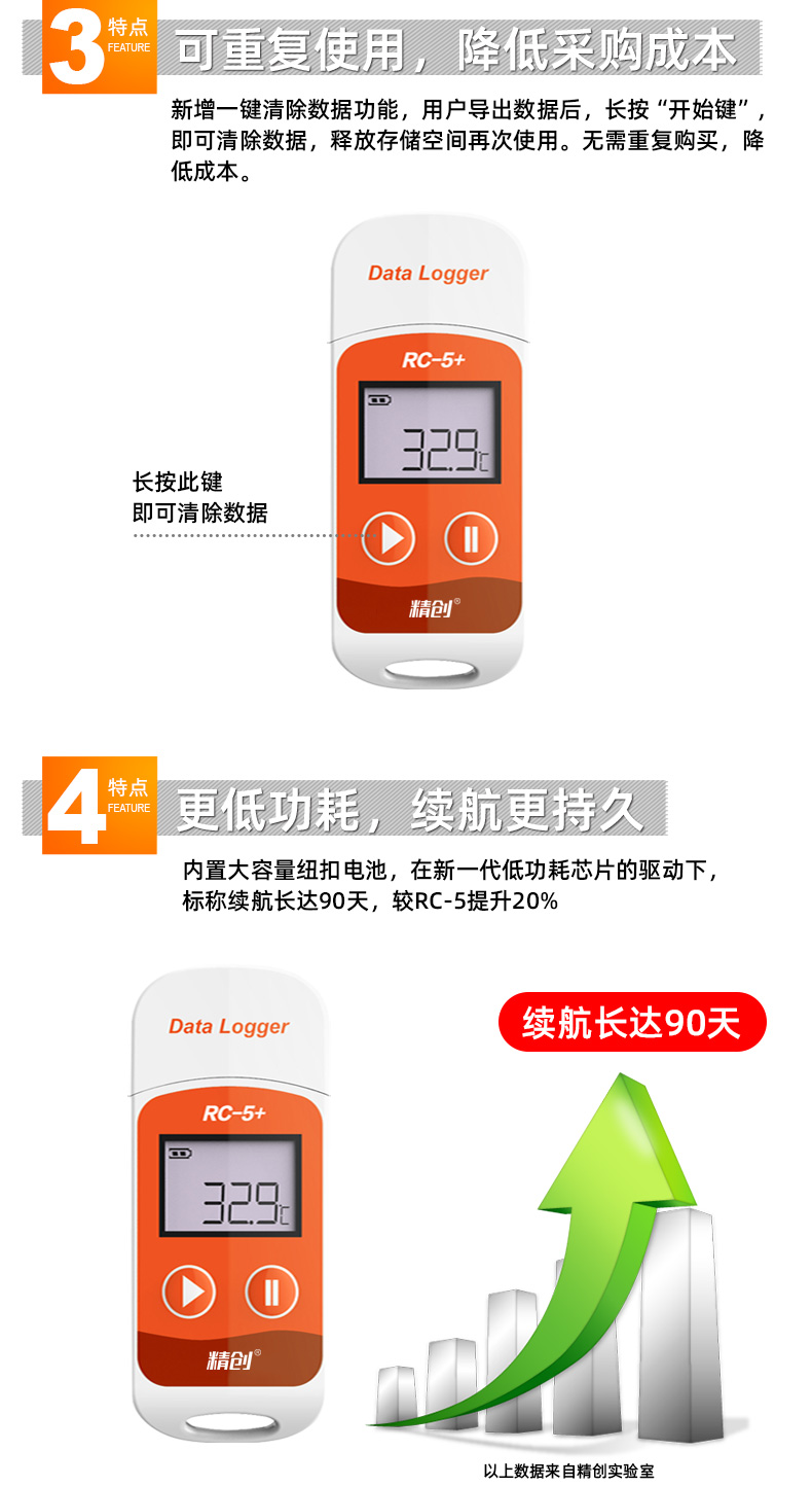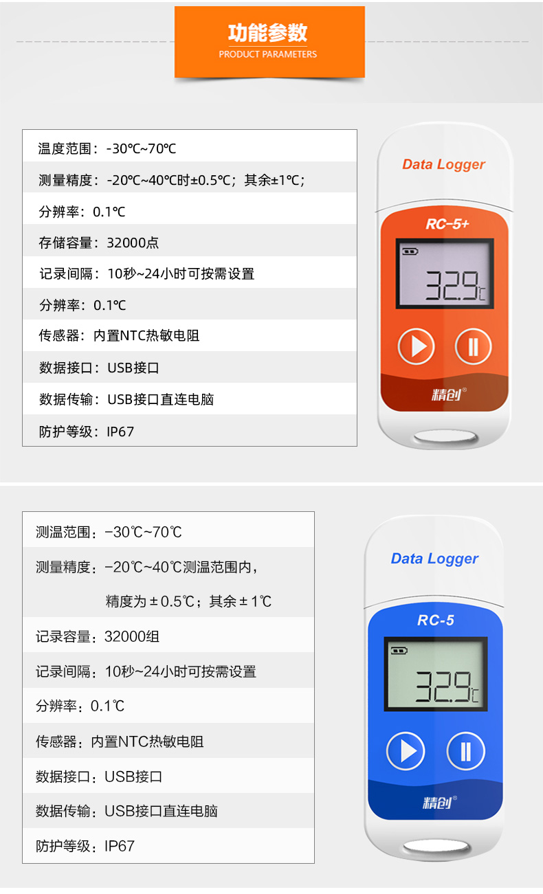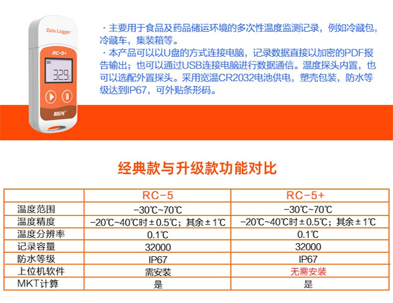 精創溫度記錄儀RC-5溫度記錄儀 自動數據U盤冷藏冷鏈運輸高精度