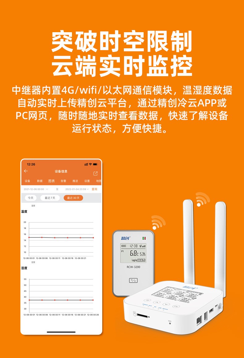 RCW-3000 分體聯網監測系統采用 LoRa 、4G 、WiFi 、以太網等多種通訊傳輸技術,由無線采集器、 網關 、云平臺、手機 APP 等 組成 。 無線 采集器 可 根據監測位置 需求任意部署網關可通過 4 G W i F i 以太網等方式上傳數據,配合云平臺和APP 可實現遠程數據查看、歷史數據查詢、遠程報警推送等功能 。 RCW-3000 分體聯網監測系統廣泛應用于大型冷庫、陰涼庫、醫院 、 生鮮超市等場景。