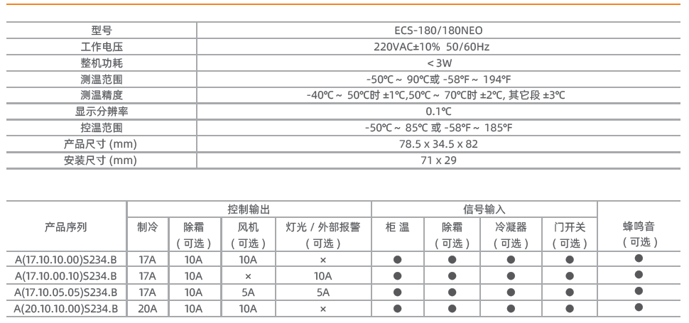 ● 多路控制輸出可進行壓縮機、除霜、風機、燈光 / 外部報警控制 ;